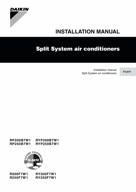 DAIKIN RY250F7W1 Manuel installation Anglais