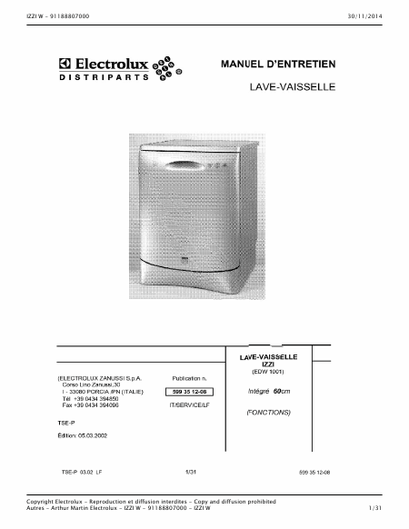 Scaricare ELECTROLUX IZZI Manuale di servizio Francese (31 Pagine) 39.90 EUR