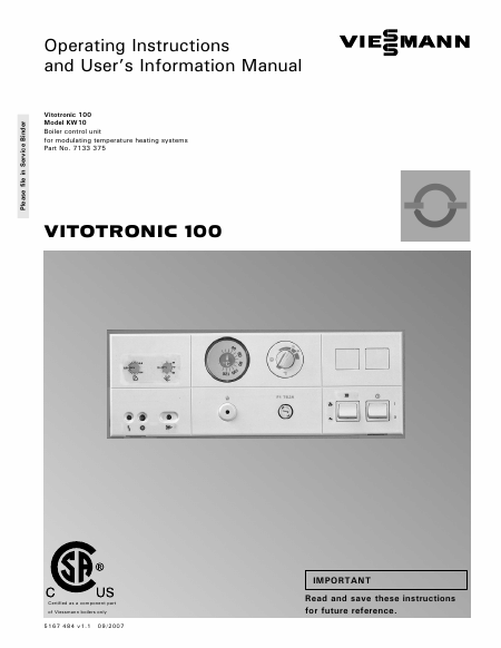 VIESSMANN Vitotronic 100 (KW10) Istruzione Inglese
