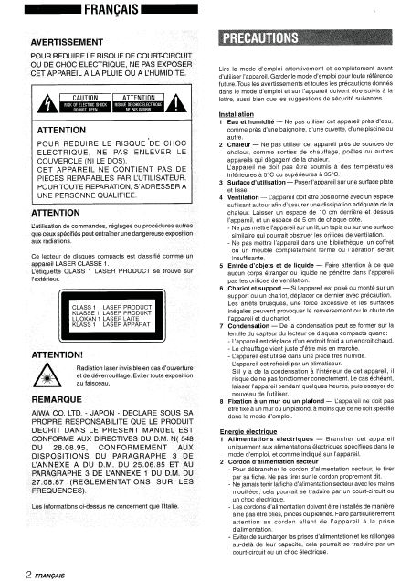 AIWA NSX-SZ40 Anleitung Französisch