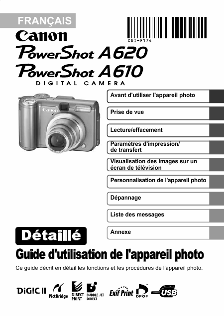 Telecharger CANON Powershot A610 / A620 Mode emploi Français (140 Pages) 15.90 EUR