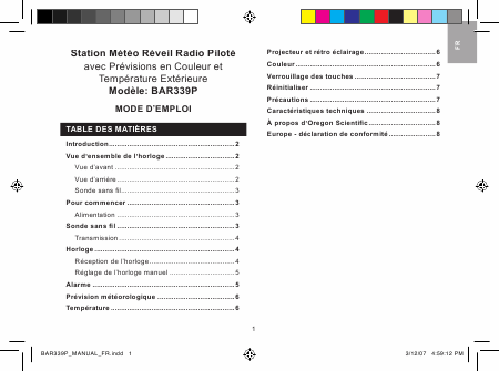 OREGON SCIENTIFIC BAR339PNBX Anleitung Französisch