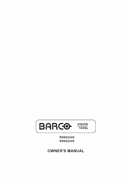 BARCO Graphics 1609s Instruções Inglês