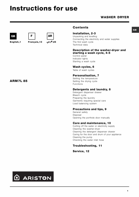 Download ARISTON ARM7L85 Users Guide French (12 Pages) 15.90 EUR