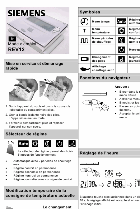 Telecharger SIEMENS REV12 Mode emploi Français (2 Pages) 15.90 EUR