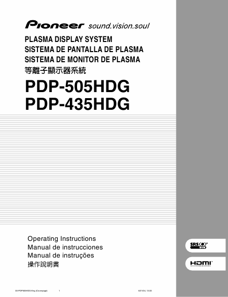 Baixar PIONEER PDP-435HDG Instruções Inglês (48 Pages) 15.90 EUR