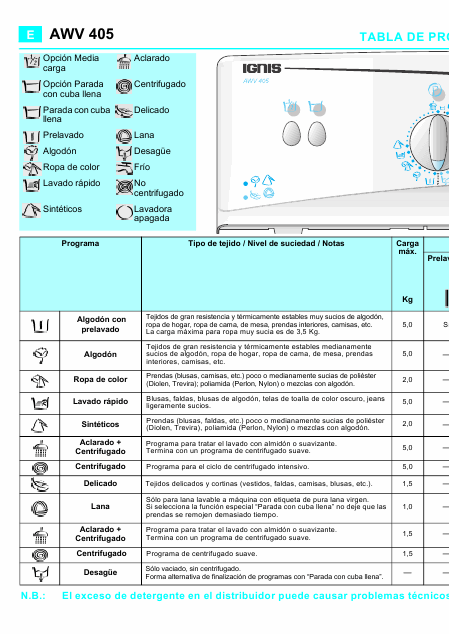 IGNIS AWV 405 (AWV405) Instruções Espanhol
