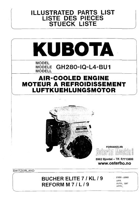KUBOTA GH280 Lista de piezas de repuesto Inglés