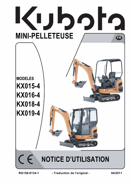 Baixar KUBOTA KX016-4 Instruções Francês (168 Pages) 59.90 EUR