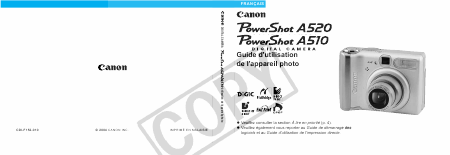 Baixar CANON PowerShot A510 / A520 Instruções Francês (0 Pages) 15.90 EUR