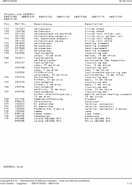 Scaricare GAGGENAU EB 875-100 Lista parti di ricambio Tedesco (12 Pagine) 39.90 EUR