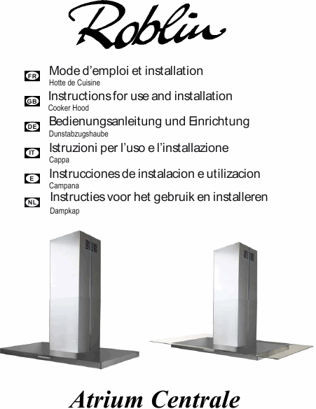 ROBLIN Atrium Centrale Instruções Inglês