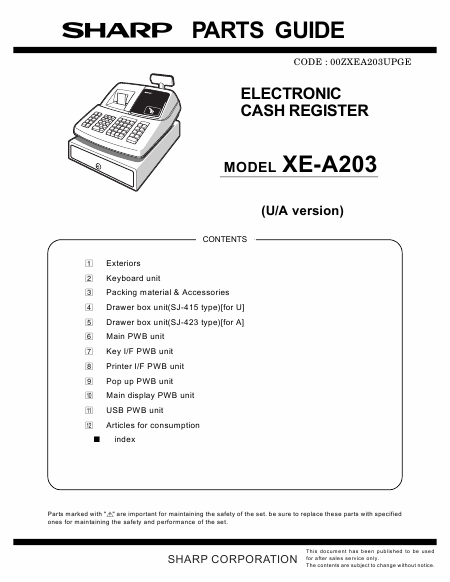 Download SHARP XE-A203 Spare Parts (IPL) English (20 Pages) 12.90 EUR