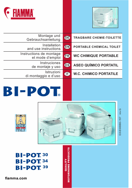 Telecharger FIAMMA BI-POT 34 Mode emploi Espagnol (14 Pages) 15.90 EUR