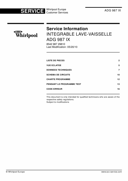 Scaricare WHIRLPOOL ADG 987 IX (ADG987) Manuale di servizio Francese (22 Pagine) 39.90 EUR