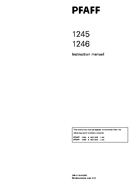 Download PFAFF 1245 / 1246 Anleitung Englisch (82 Seiten) 12.90 EUR