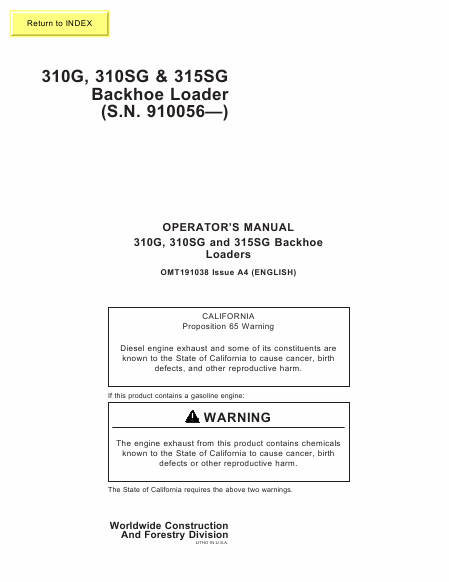 JOHN DEERE 310SG Users Guide English