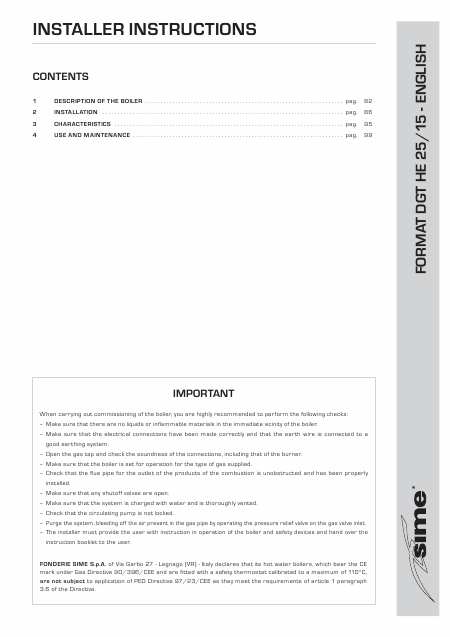 Descargar SIME FORMAT DGT HE 25/15 Manual de instalación Inglés (28 Páginas) 12.90 EUR