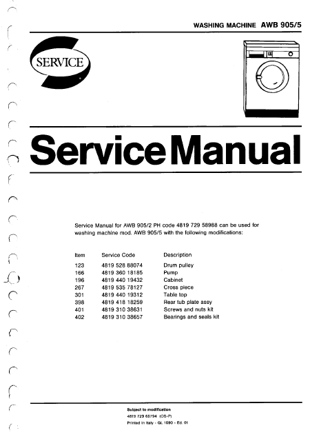 PHILIPS AWB 905/5 Manuale di servizio Inglese