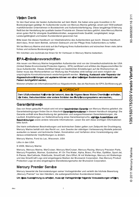 Telecharger MERCURY Verado 175 Mode emploi Allemand (113 Pages) 15.90 EUR