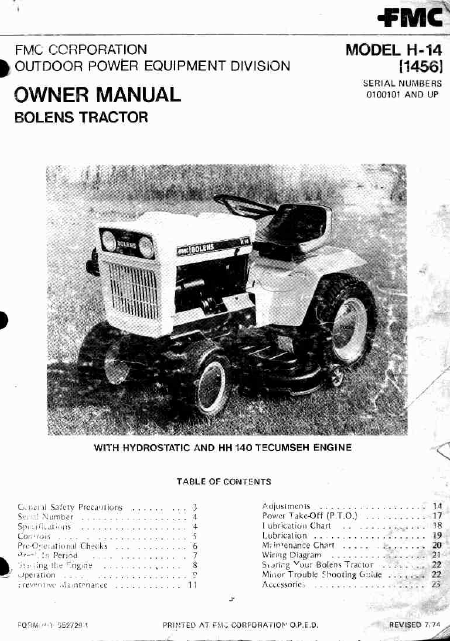 BOLENS H-14 (1456) Anleitung Englisch