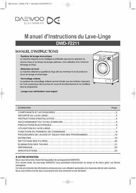 DAEWOO DWD-F2211 Guía del usuario Francés