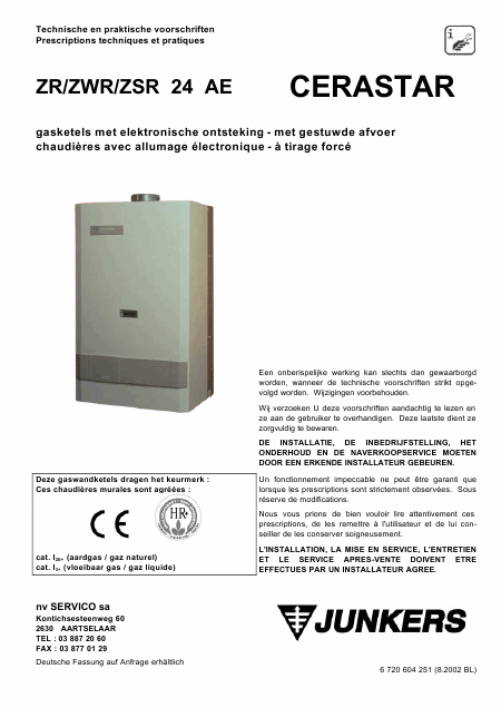 Download JUNKERS ZR 24 AE Users Guide French (34 Pages) 15.90 EUR