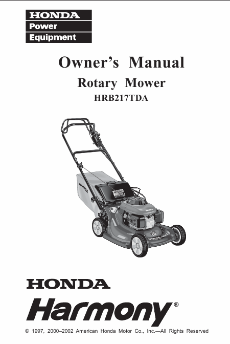 HONDA HRB217TDA Mode emploi Anglais