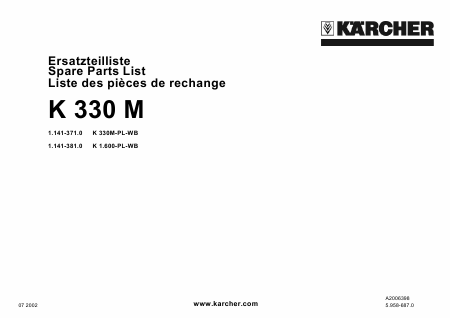 Baixar KARCHER K 330 M Lista de peças Inglês (30 Pages) 15.90 EUR