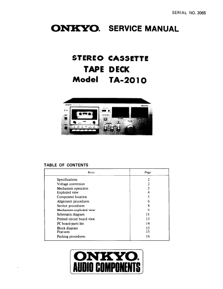 Download ONKYO TA-2010 Service Manual English (13 Pages) 15.90 EUR