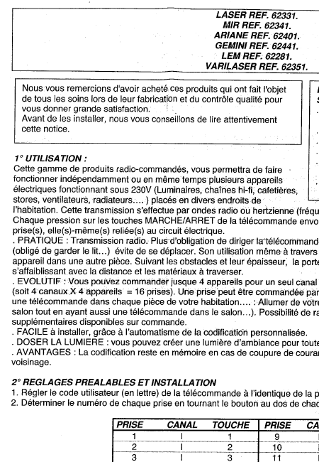 TIBELEC ARIANE REF. 62401 Anleitung Französisch
