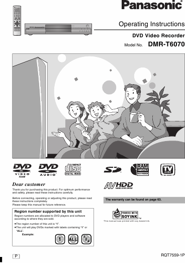 PANASONIC DMR-T6070 Mode emploi Anglais
