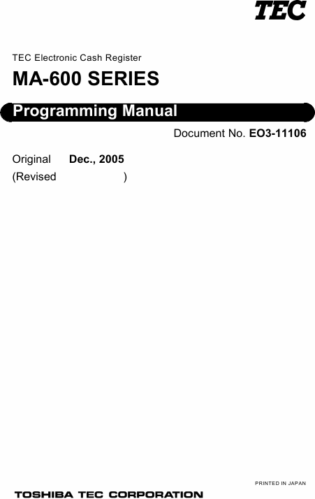 Download TEC MA-600 Series (Programming) Installation Manual English (194 Pages) 39.90 EUR
