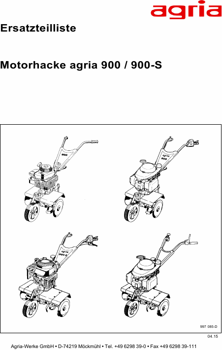 Scaricare AGRIA 900 Lista parti di ricambio Tedesco (24 Pagine) 39.90 EUR