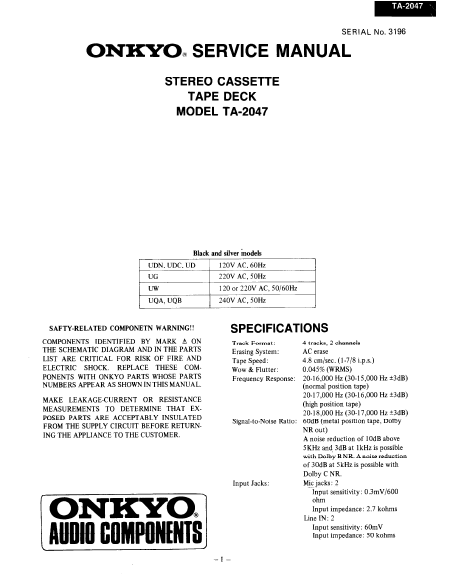 ONKYO TA-2047 Manuale di servizio Inglese