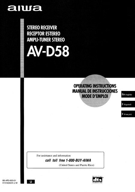 AIWA AV-D58 (AVD58) Anleitung Englisch