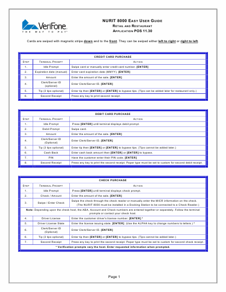VERIFONE Nurit 8000 Kurzanleitung Englisch