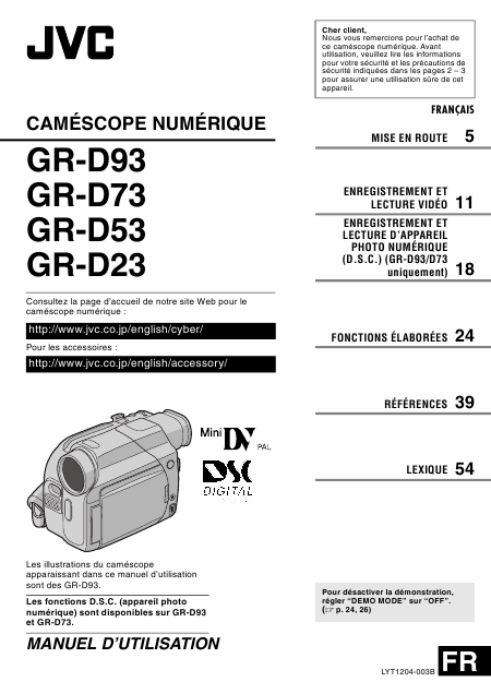 Download JVC GR-D93 / GR-D73 Users Guide French (56 Pages) 15.90 EUR