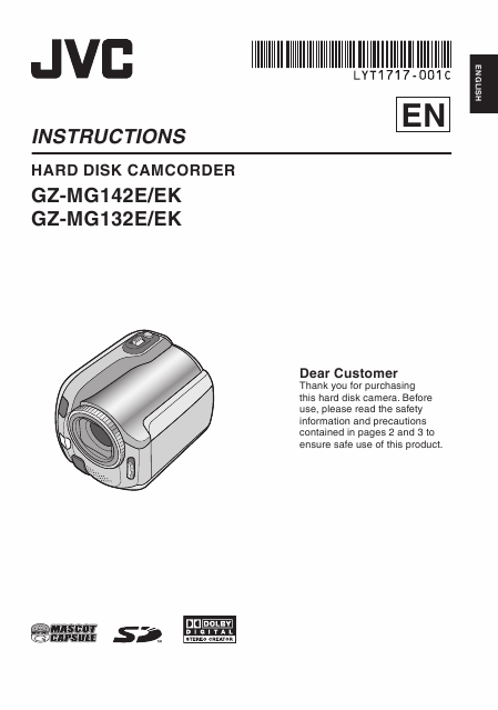 Baixar JVC GZ-MG142 (GZMG142) Instruções Inglês (84 Pages) 59.90 EUR