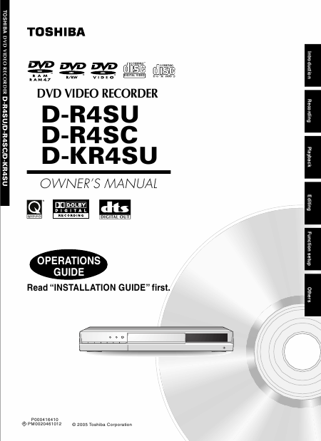 TOSHIBA D-R4SC (DR4SC) Anleitung Englisch