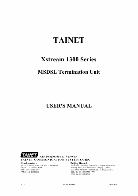 TAINET Xstream 1300 Series Anleitung Englisch