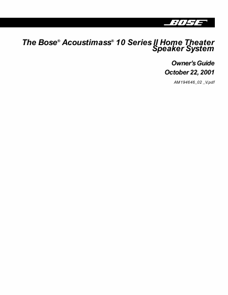 Descargar BOSE Acoustimass 10 Series II Guía del usuario Inglés (21 Páginas) 12.90 EUR