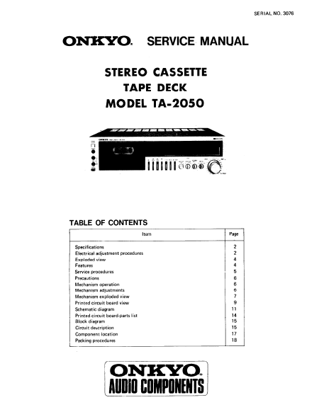 Download ONKYO TA-2050 Serviceanleitung Englisch (14 Seiten) 15.90 EUR