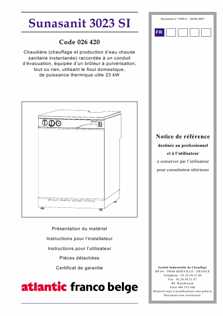 ATLANTIC FRANCO-BELGE Sunasanit 3023 SI Users Guide French