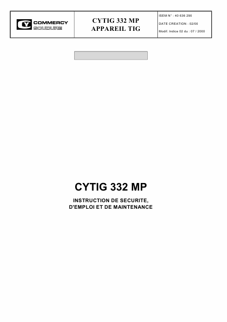 Download COMMERCY CYTIG 232 MP Users Guide French (38 Pages) 39.90 EUR
