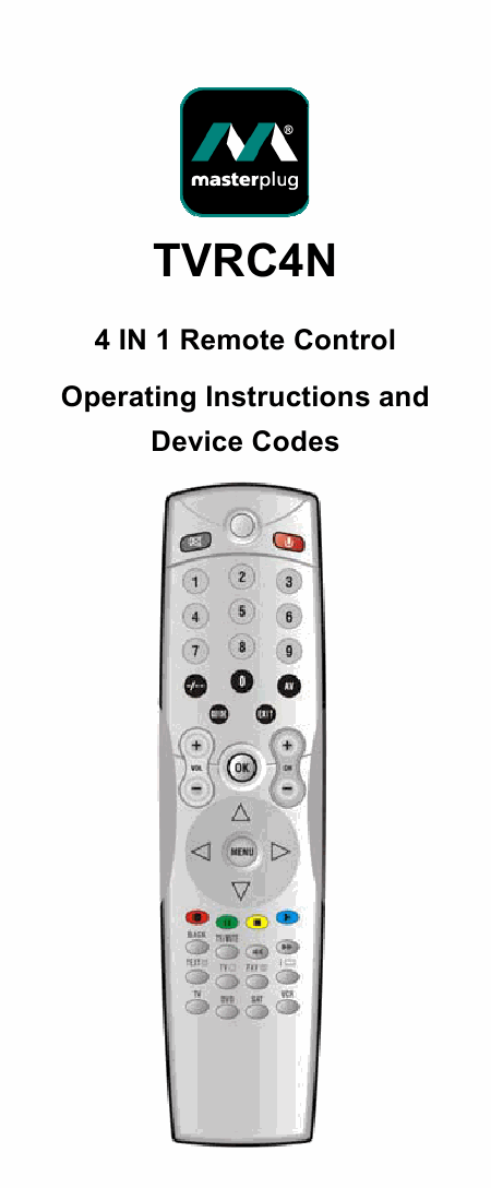 MASTERPLUG TVRC4N (Codes included) Guía del usuario Inglés