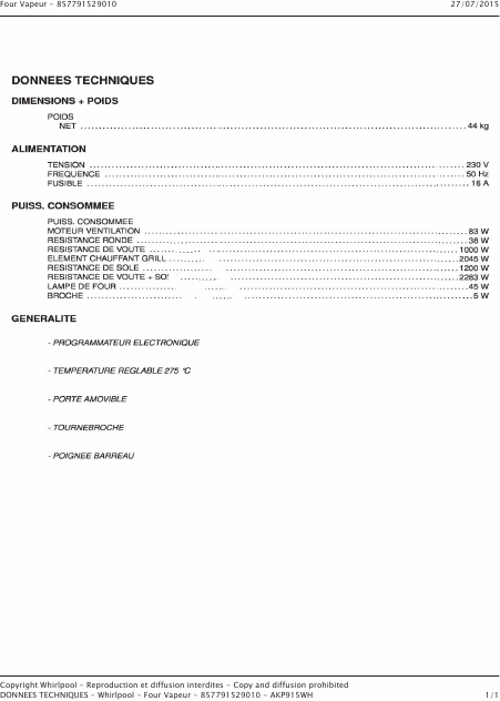 Telecharger WHIRLPOOL AKP 915 Liste pieces detachees Français (8 Pages) 39.90 EUR