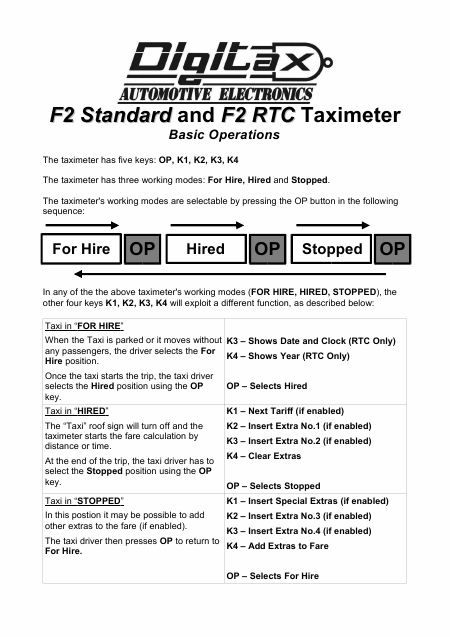 DIGITAX F2 Instruções Inglês