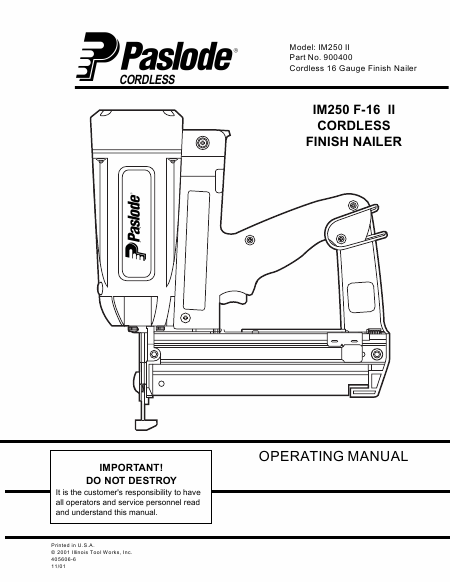 PASLODE IM250 F-16 II Users Guide English