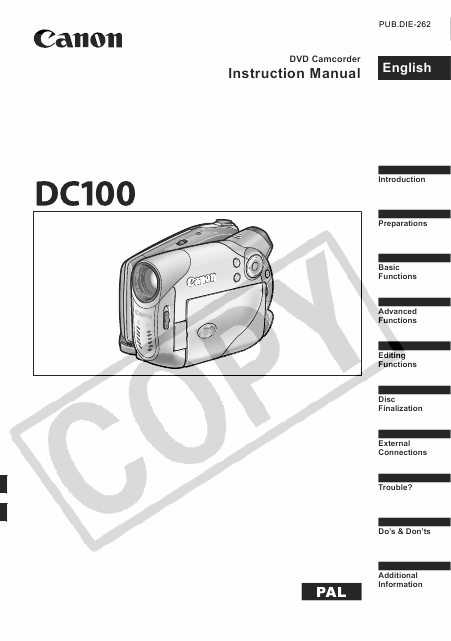 CANON DC100 (PAL) Mode emploi Anglais